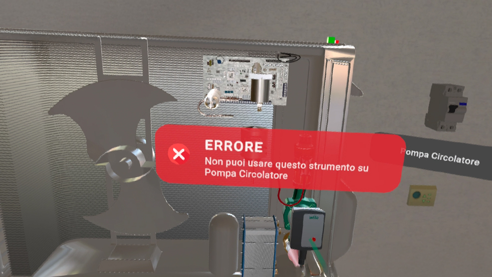 Laboratorio interattivo in 3D per la diagnostica e la riparazione di prodotti tramite l’uso di strumenti virtuali.