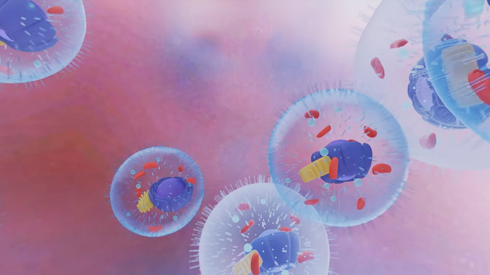 Esplorazione video narrativa delle cellule in 3D con interazione tramite movimento oculare.